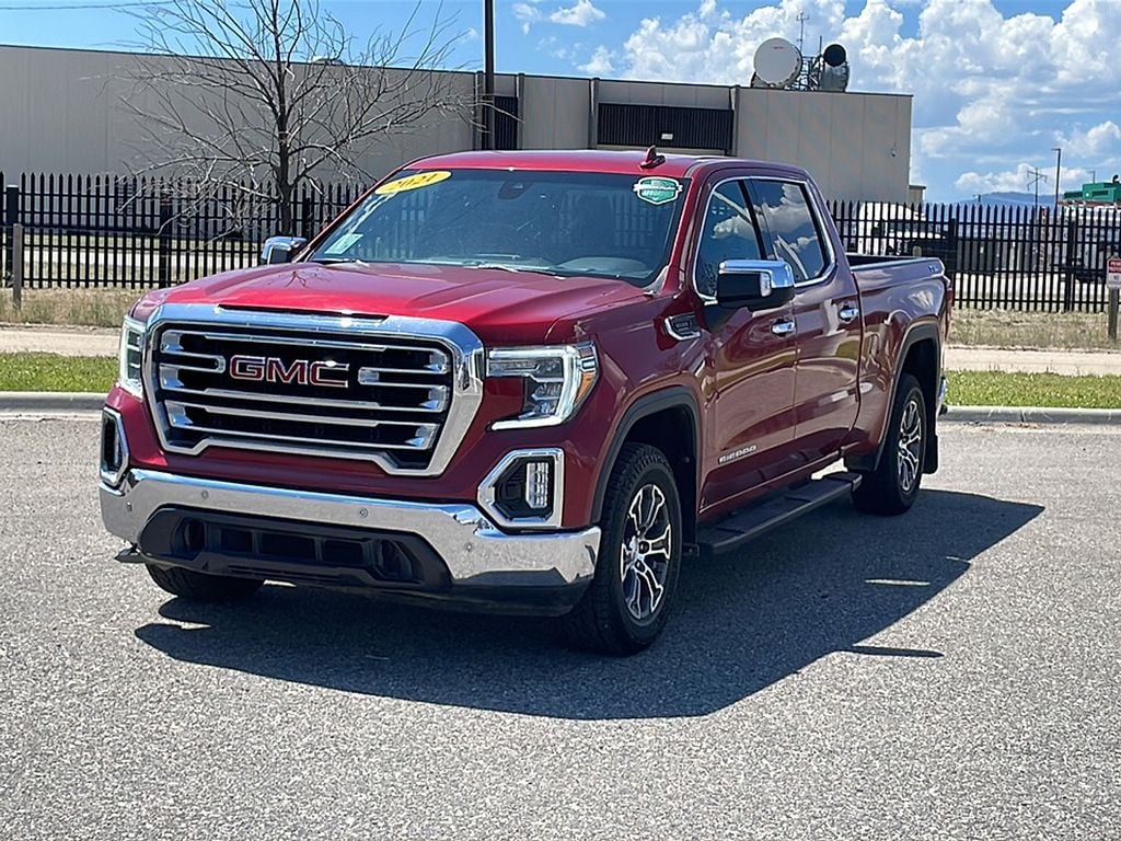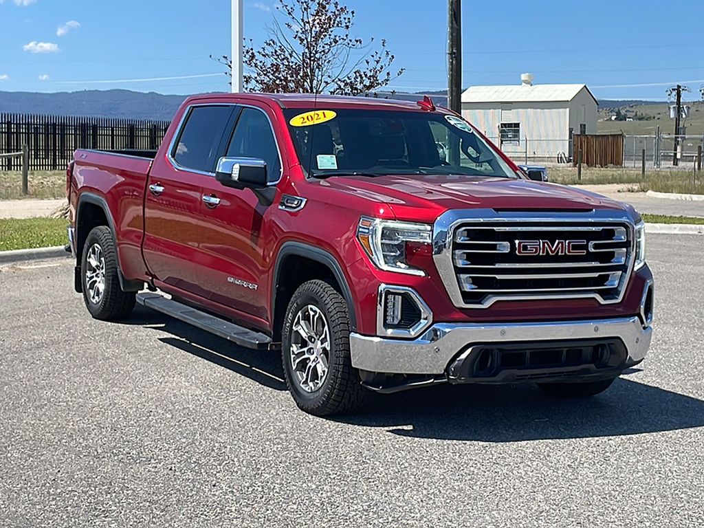 This GMC Sierra has a clean AutoCheck report, ensuring its impeccable vehicle history. This 1/2 ton pickup offers Apple CarPlay for seamless connectivity. This 2021 GMC Sierra 1500's AutoCheck: 1 owner, assurance of single-owner history for peace of mind. Keep your hands warm all winter with a heated steering wheel in this GMC Sierra . This 2021 GMC Sierra 1500 features a hands-free Bluetooth phone system. The leather seats in this 1/2 ton pickup are a must for buyers looking for comfort, durability, and style. It keeps you comfortable with Auto Climate. Protect the vehicle from unwanted accidents with a cutting edge backup camera system. The steering wheel audio controls on this model keep the volume and station within easy reach. This unit offers Android Auto for seamless smartphone integration. It excites both driver and bystanders with a polished red exterior with racy lines. Set the temperature exactly where you are most comfortable in it. The fan speed and temperature will automatically adjust to maintain your preferred zone climate.
