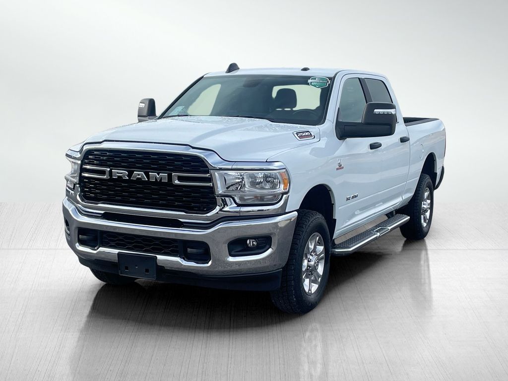 It's AutoCheck: 1 owner, assurance of single-owner history for peace of mind. This 3/4 ton pickup has a clean AutoCheck report. See what's behind you with the back up camera on it. Bluetooth technology is built into the Ram 2500, keeping your hands on the steering wheel and your focus on the road. The vehicle offers Apple CarPlay for seamless connectivity. This 3/4 ton pickup is equipped with the latest generation of XM/Sirius Radio. It has satellite radio capabilities. This vehicle comes equipped with Android Auto for seamless smartphone integration on the road. A trailer braking system is already installed on this vehicle. When you encounter slick or muddy roads, you can engage the four wheel drive on the Ram 2500 and drive with confidence. The Ram 2500 has a 6 Cyl, 6.7L high output engine. Quickly unlock this 3/4 ton pickup with keyless entry. It embodies class and sophistication with its refined white exterior.